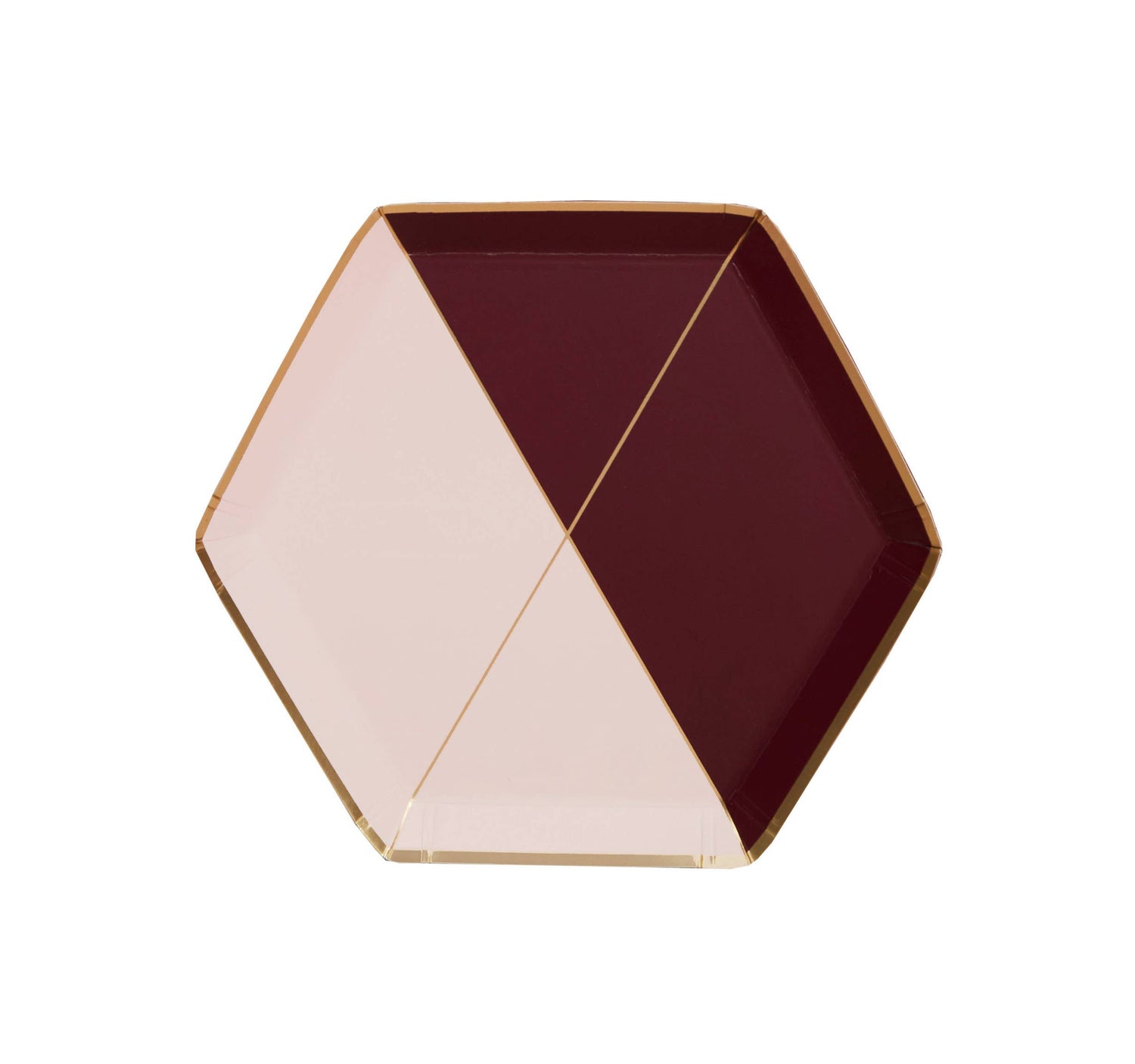 Bold yet understated, our maroon and pink hexagon party plates are adorned with delicate gold lines and are perfectly made for baby showers, wedding events, milestone birthdays, special occasions and holidays!