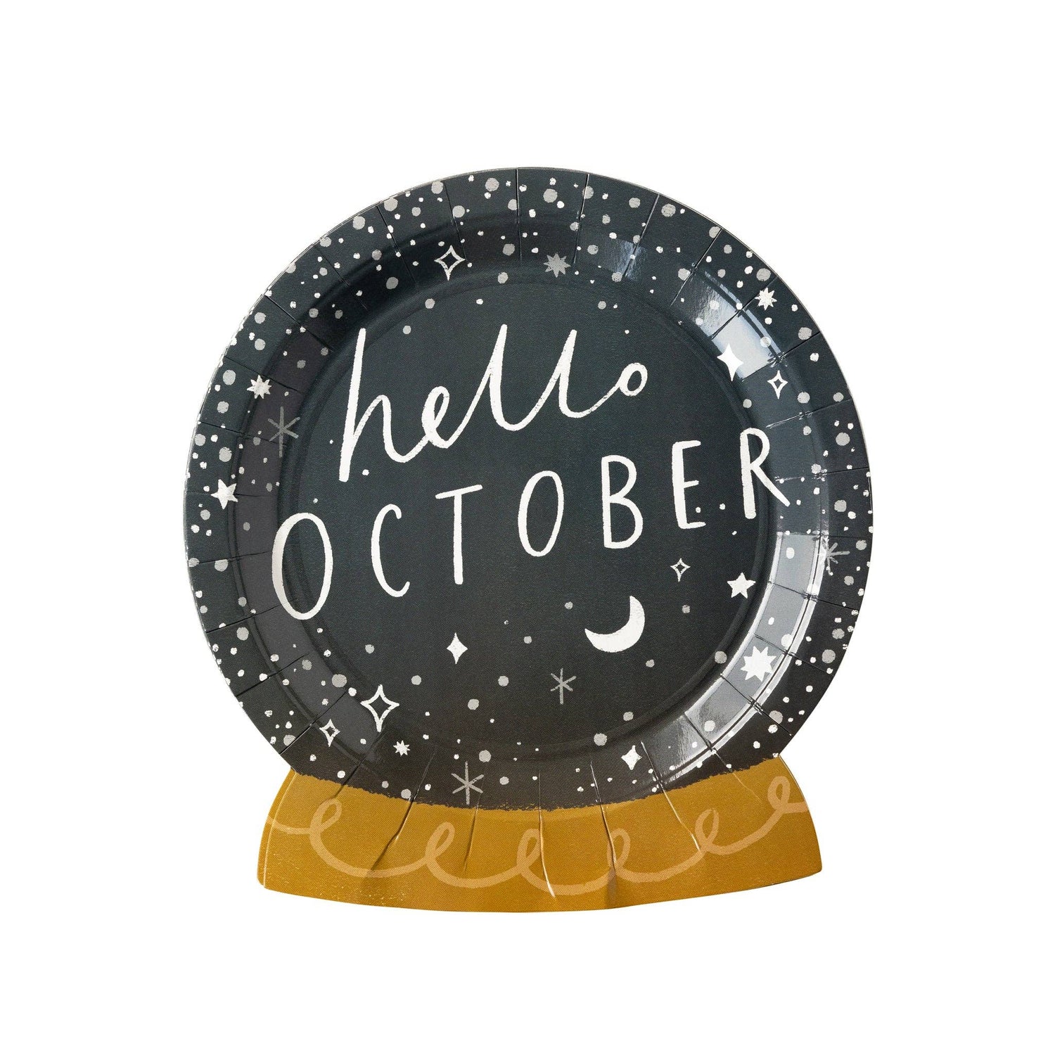 We see in your future delicious Halloween goodies, so be sure to pick up these crystal ball shaped plates. Featuring the sentiment "Hello October," these party plates are the perfect way to serve up your loved ones frightful favorites this fall with spooky touch.