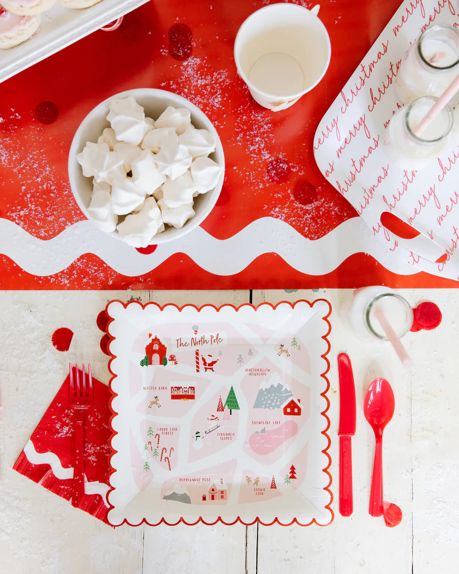 Make your holiday celebrations merry and bright with this Christmas inspired table runner. Featuring festive ric rac pattern, this table runner will make a merry statement at your table this Christmas season at all of your gatherings. • 16 x 120 inch paper table runner