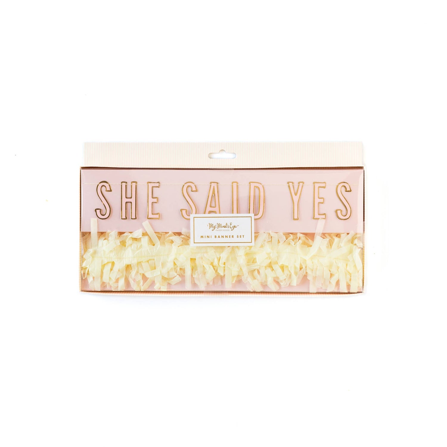 She said yes, so it's time to party! Set the stage for your bridal festivities with this chic banner set. The "SHE SAID YES" word banner is the perfect sentiment for your bridal shower, and give your bachelorette party backdrop some texture with this perfectly festive festoon banner.
