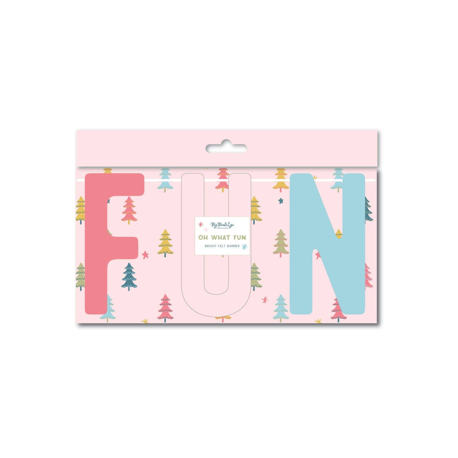 Oh what fun you will have making your loved one's spirits bright with this festive felt banner. Designed with a modern Christmas color palette, these word banner comes prestrung with the festive Christmas sentiment "Oh What Fun." This bright and modern holiday banner is sure to be piece of decor in your home all December long. • banner is approximately 2.5' long • Sewn banner • felt letters are approximately 4" tall