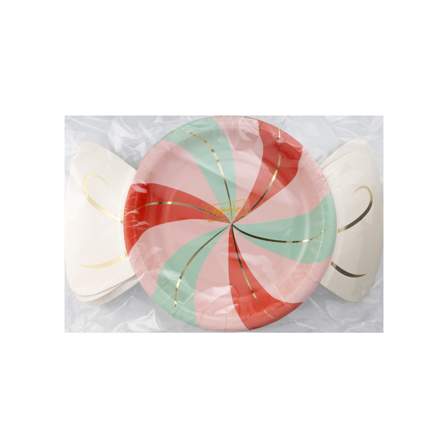 Add a playful touch to your holiday table with our candy-shaped 11" plate perfect for serving up delicious treats. This quirky plate is sure to bring a smile to any gathering and make your desserts even sweeter. • includes 8 shaped paper plates • 11" x 7" • gold foil