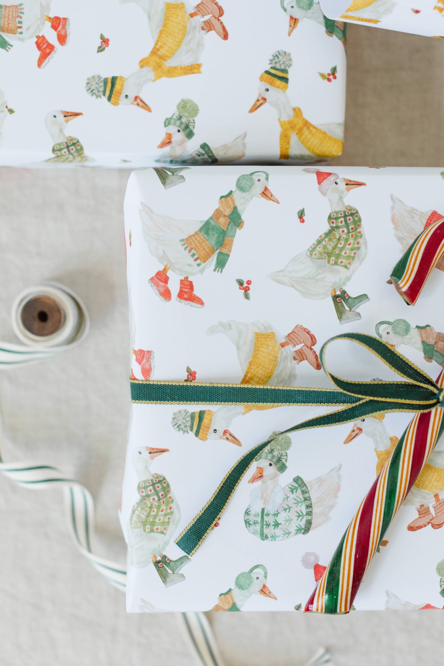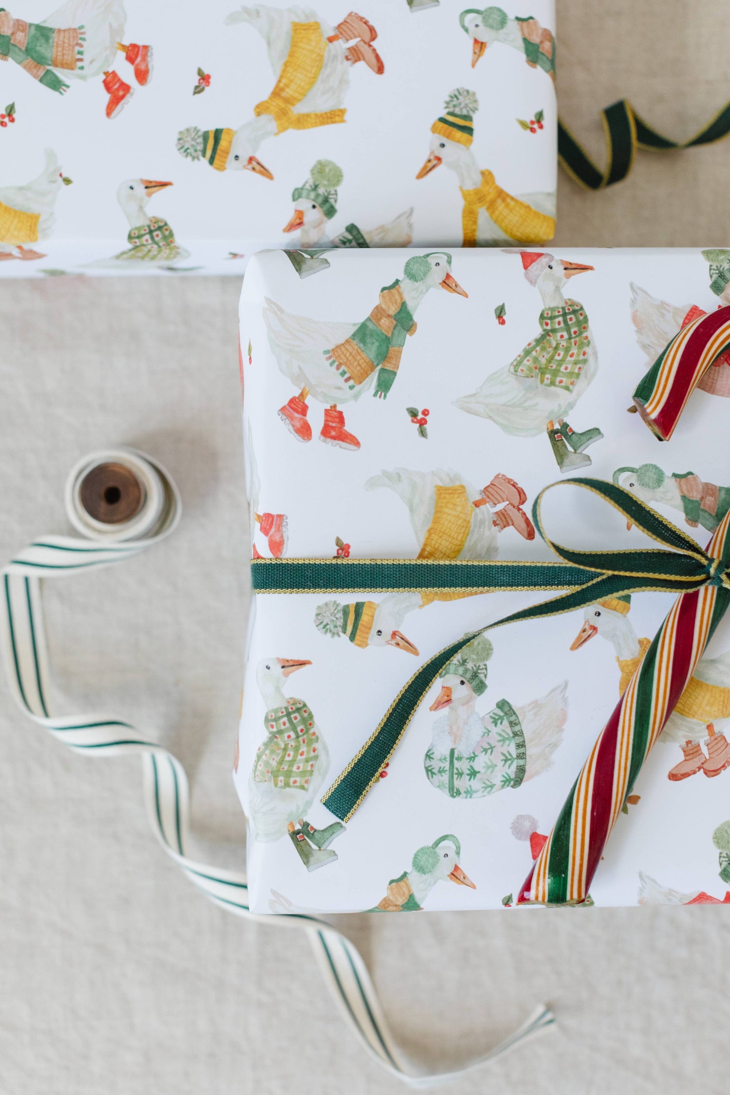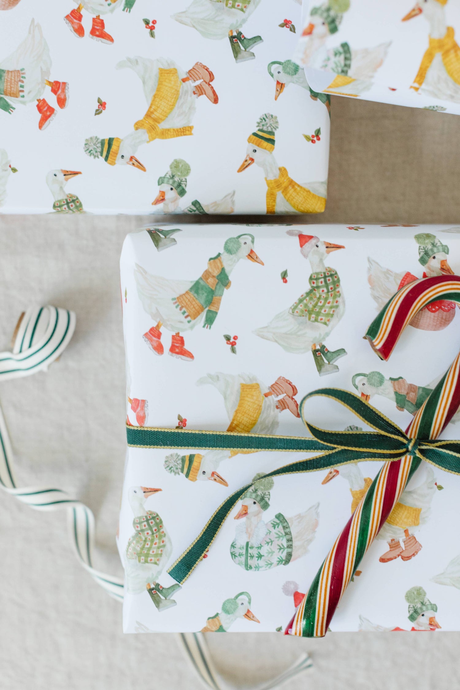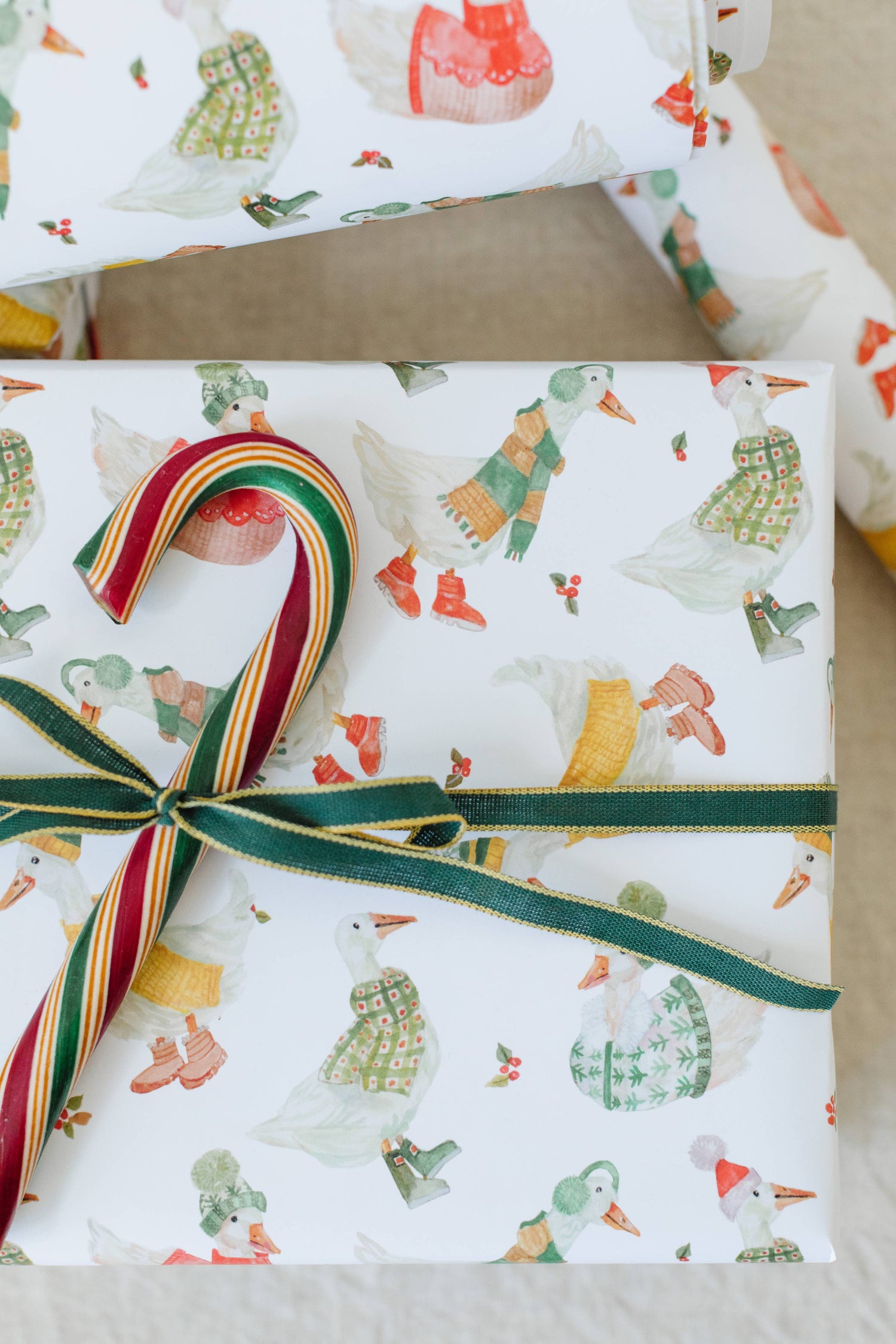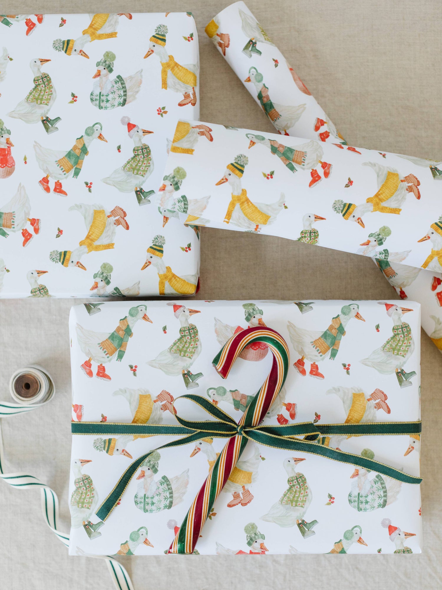 Deck the halls (and your gifts) with a gaggle of holiday geese! The holiday honkers on this adorable gift wrap are dressed for winter with colorful scarves, beanies, boots, and even ear-warmers (But wait—do they even have ears?). Everyone who’s young at heart is sure to enjoy this fun and festive flock this Christmas.