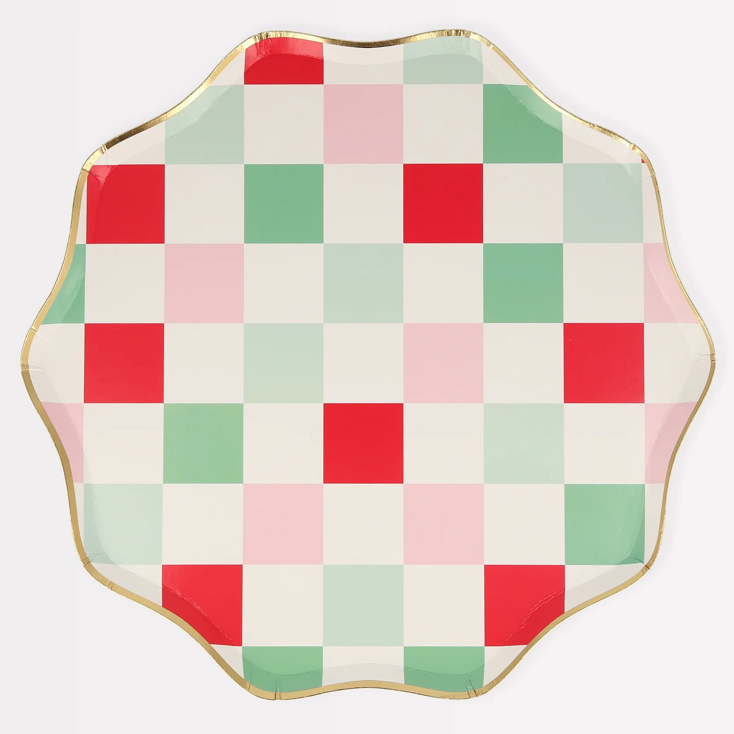 Check out these special plates! The jolly mix of traditional festive greens and red team beautifully with pink and gold foil for a statement effect. And there's more - turn them over and delight at the pink color on the back! The colors will complement all your Christmas decorations and tableware, perfect for celebrations during the holidays and beyond.