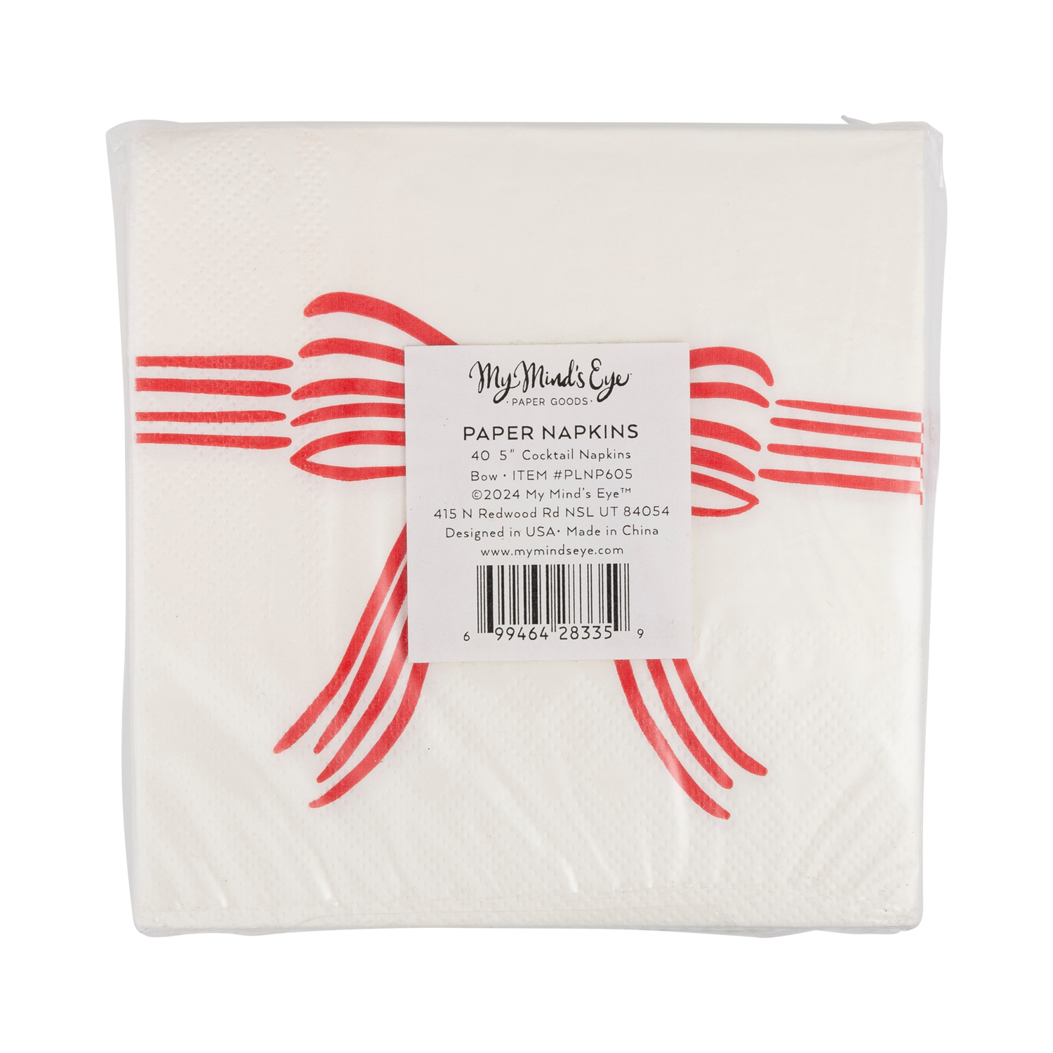Spruce up your holiday party with our Bow Cocktail Napkin! This festive Christmas napkin features a charming red bow design, adding a touch of elegance to your celebrations. Don't forget to grab a few for your next gathering! • includes 24 paper cocktail napkins • 5 x 5" Note: Limited Run pieces may be carried by larger platform and box locations in your area.