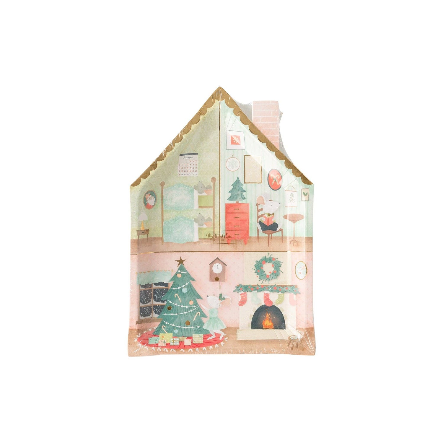 When all through the house Holiday festivities are happening these jolly plates are a must. Featuring a cozy Christmas cottage with gorgeous gold foil accents these house shaped paper plates will be the highlight of your Christmas party table!