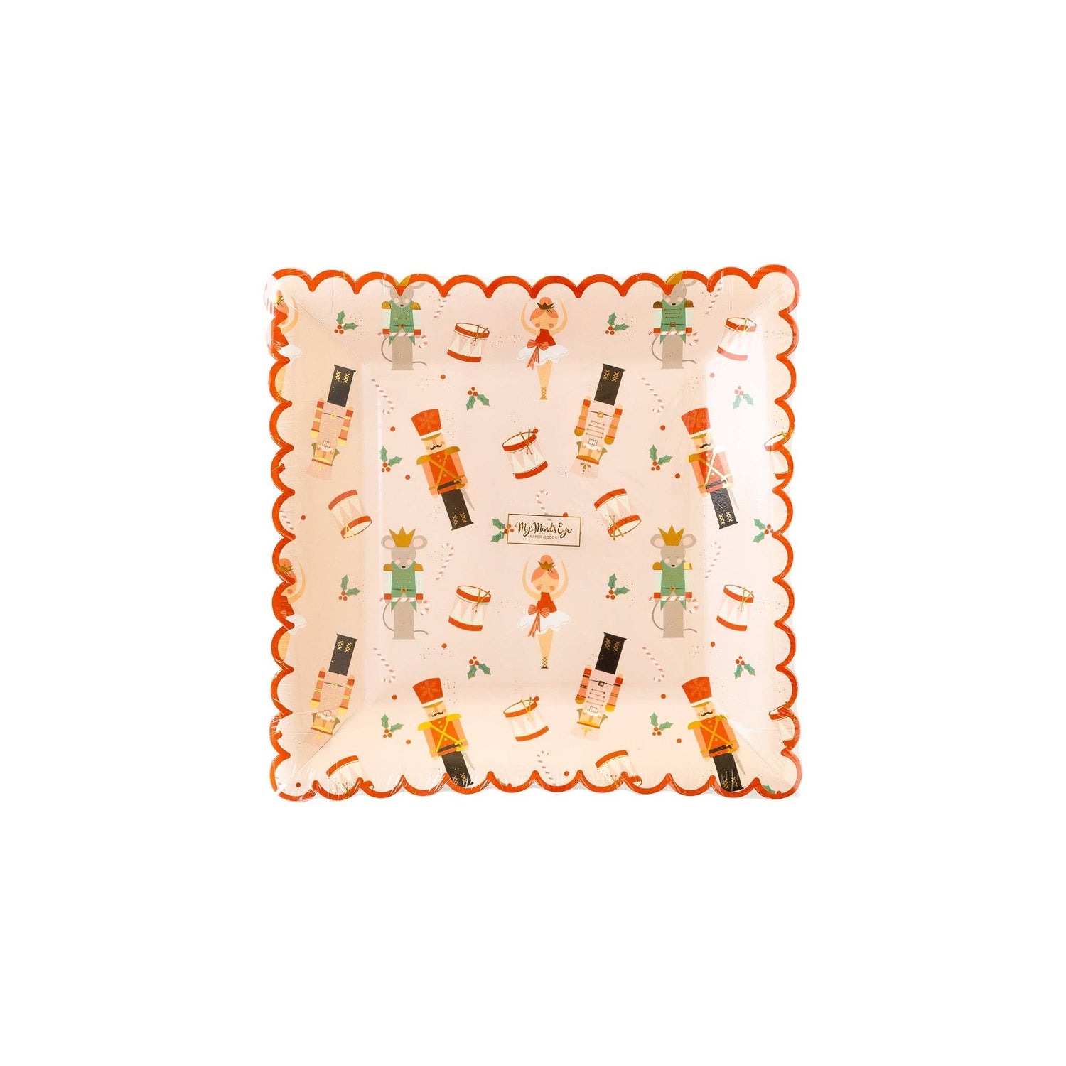 Make spirits bright this Holiday season with these whimsical party plates! Featuring characters from your favorite Christmas ballet, these scalloped party plates will delight your guests at Christmas dinner. And with bright gold foil accents you and your loved ones are in for a jolly good time at any Holiday gathering where a plateful of Christmas goodies are on the menu.