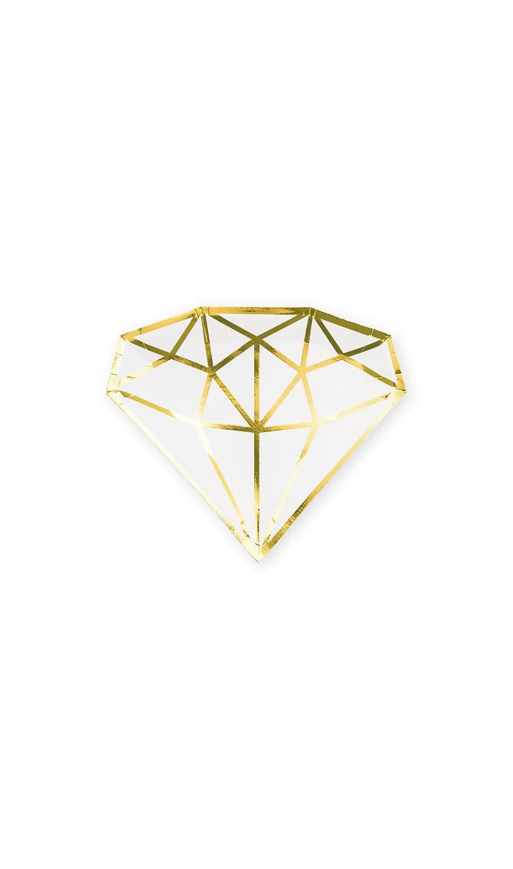 Set a fancy table with these small decorative paper plates, perfect for all kinds of entertaining. The posh metallic gold accents give an attractive look to the diamond shaped throw away paper products. A nice way to add an elegant decorative touch to wedding gatherings like the reception, bachelorette party, bridal shower, or other events like birthday parties, graduation celebrations, and anniversaries. Not only are they a glamorous, high quality product, but they’re also a disposable, low maintenance tableware alternative to regular dishes.